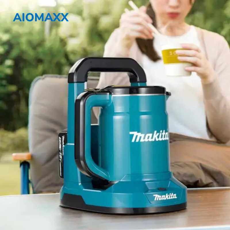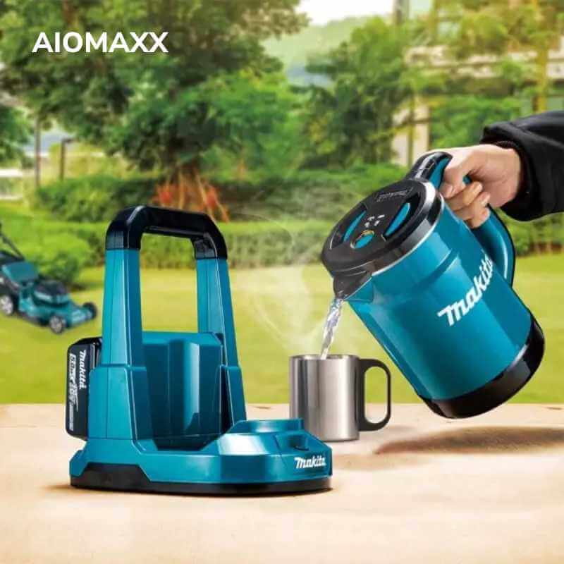 • Ấm đun nước dùng pin được cung cấp năng lượng bởi hai pin Li-Ion 18V LXT nối tiếp. Bộ ấm đun nước này bao gồm một Ấm đun nước 0,8L và một đế tiếp điện.